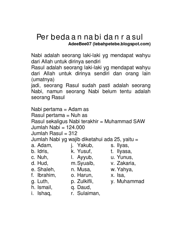 25 Nama Nabi Dan Rasul