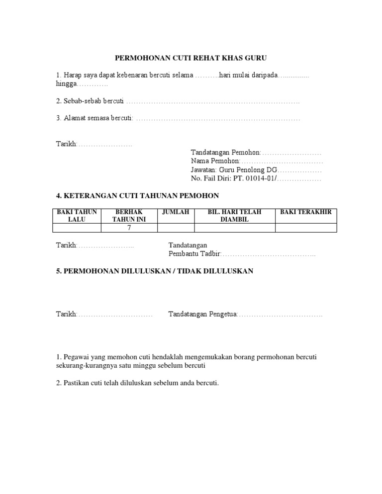 Surat Permohonan Cuti Rehat 0 Descargar