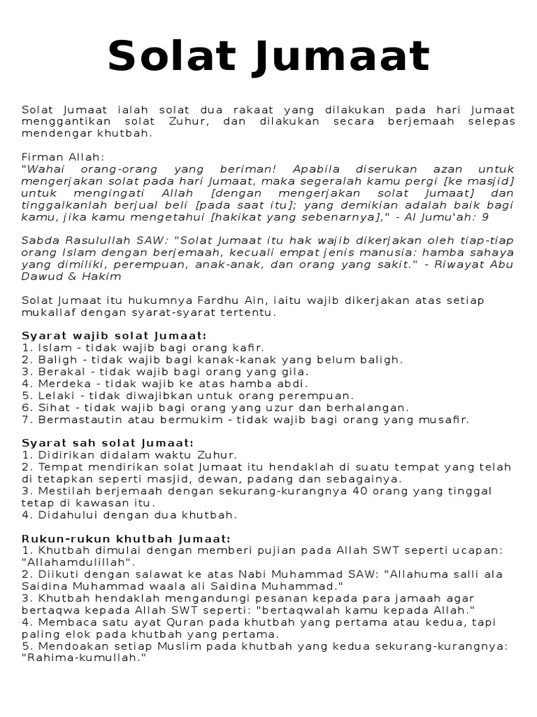 Doc Hukum Solat Jumaat Abu Izzah At Tualanji Academia Edu